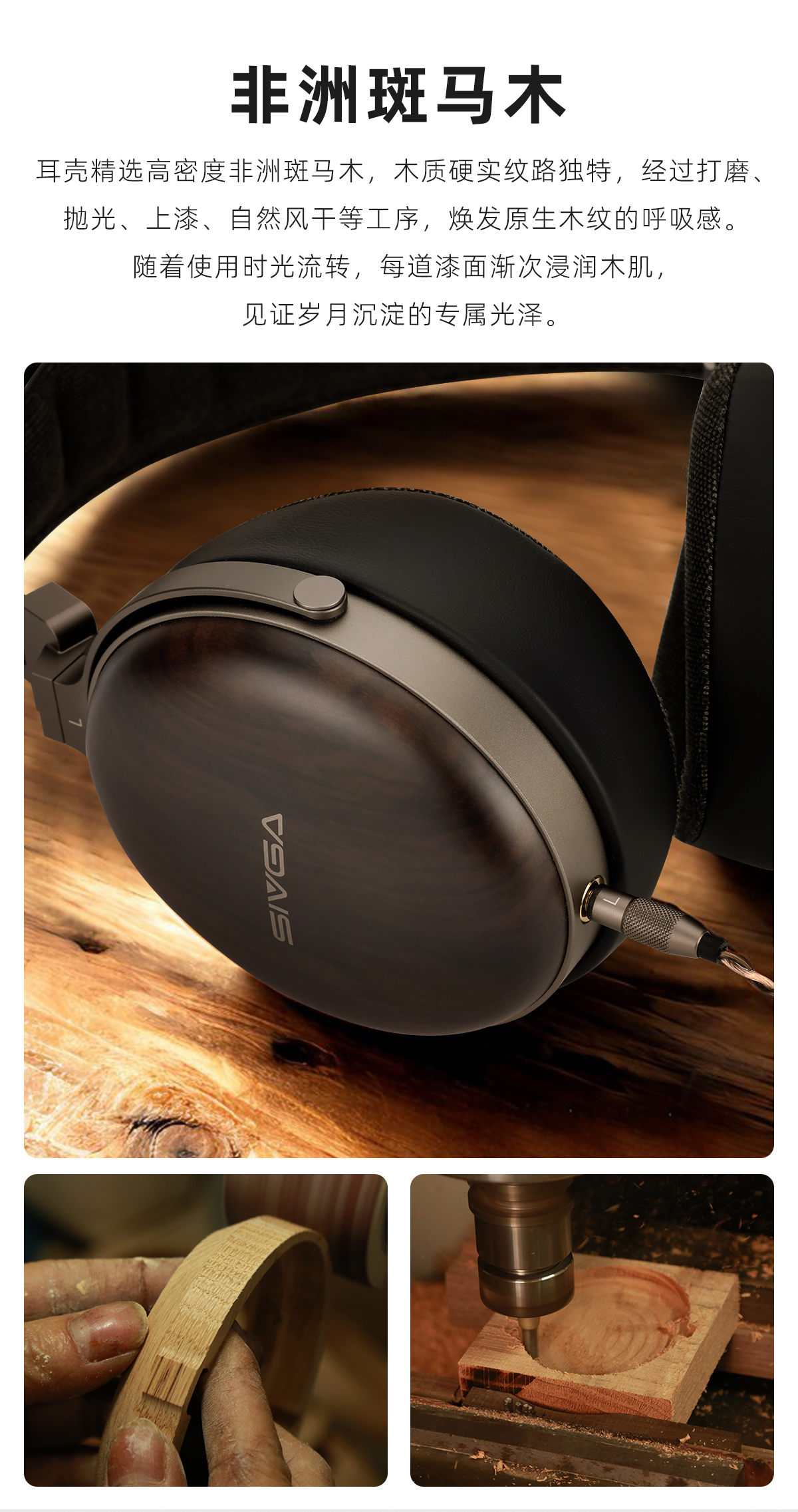 - 高阻抗高保真,音质清澈透亮,层次分明 - 非洲斑马木,木质硬实纹路独特 - 核心膜片创新搭载铜环稳定系统,传输稳定,降低失真 - 人体工学异性耳套,贴合耳部轮廓,佩戴舒适 - 可拆卸6N OCC高纯度线材确保高清音质