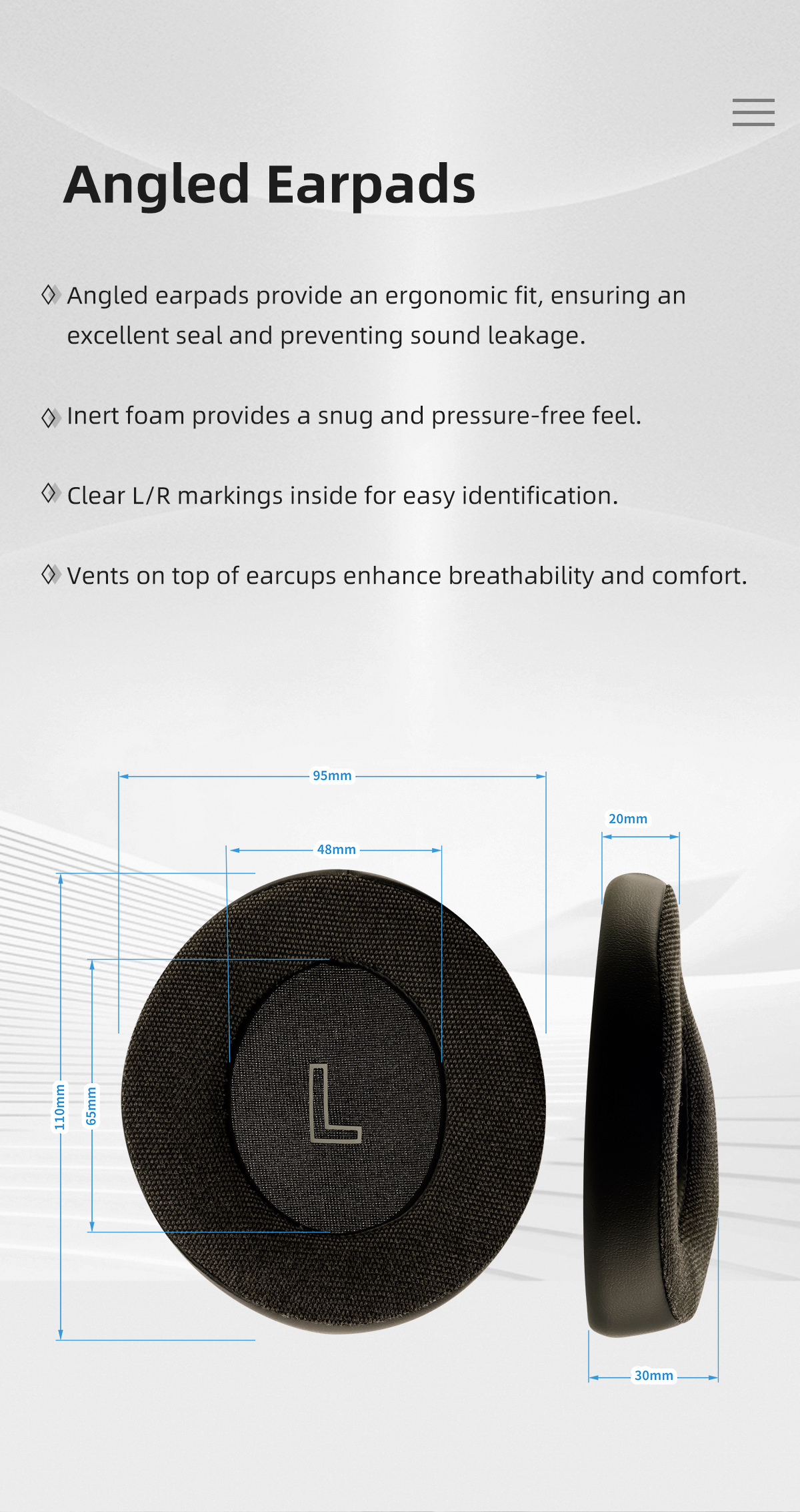- Angled earpads provide an ergonomic fit, ensuring an excellent seal