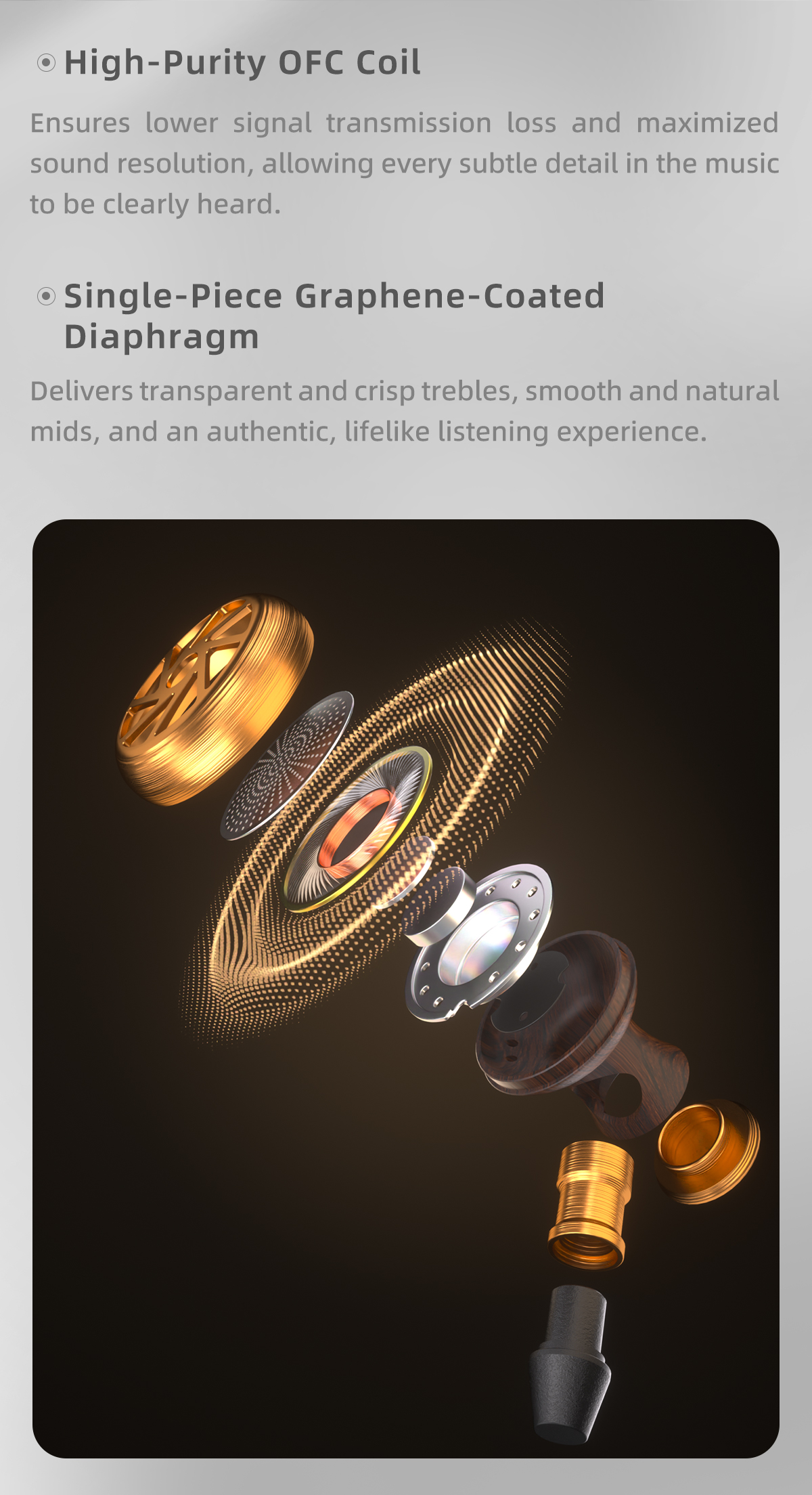 -15.4mm Large Dynamic Driver -African Ebony Wood Housing -CNC-Machined Aviation Aluminum Alloy -3.5mm SE High-Purity Silver-Plated OFC Cable