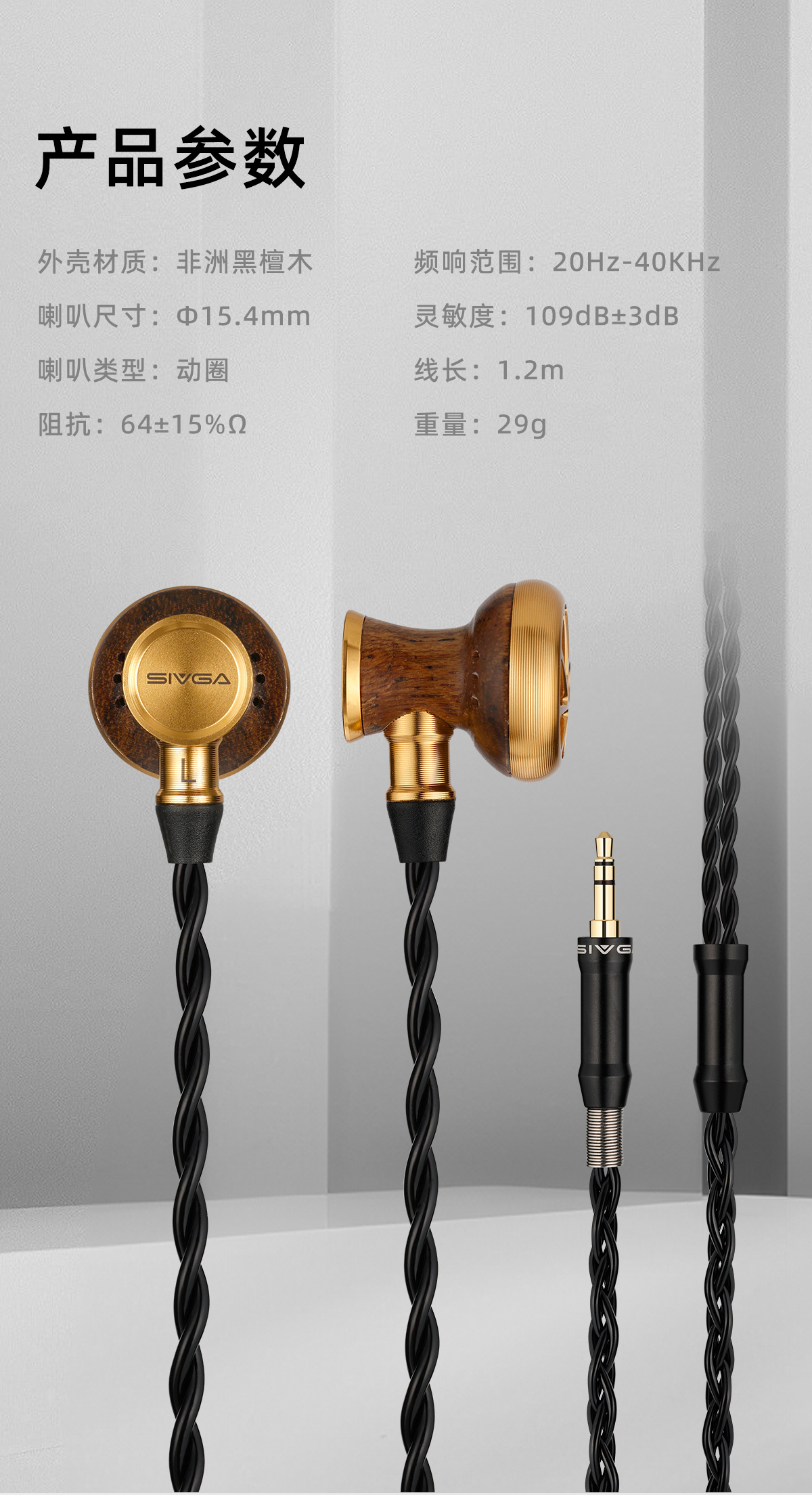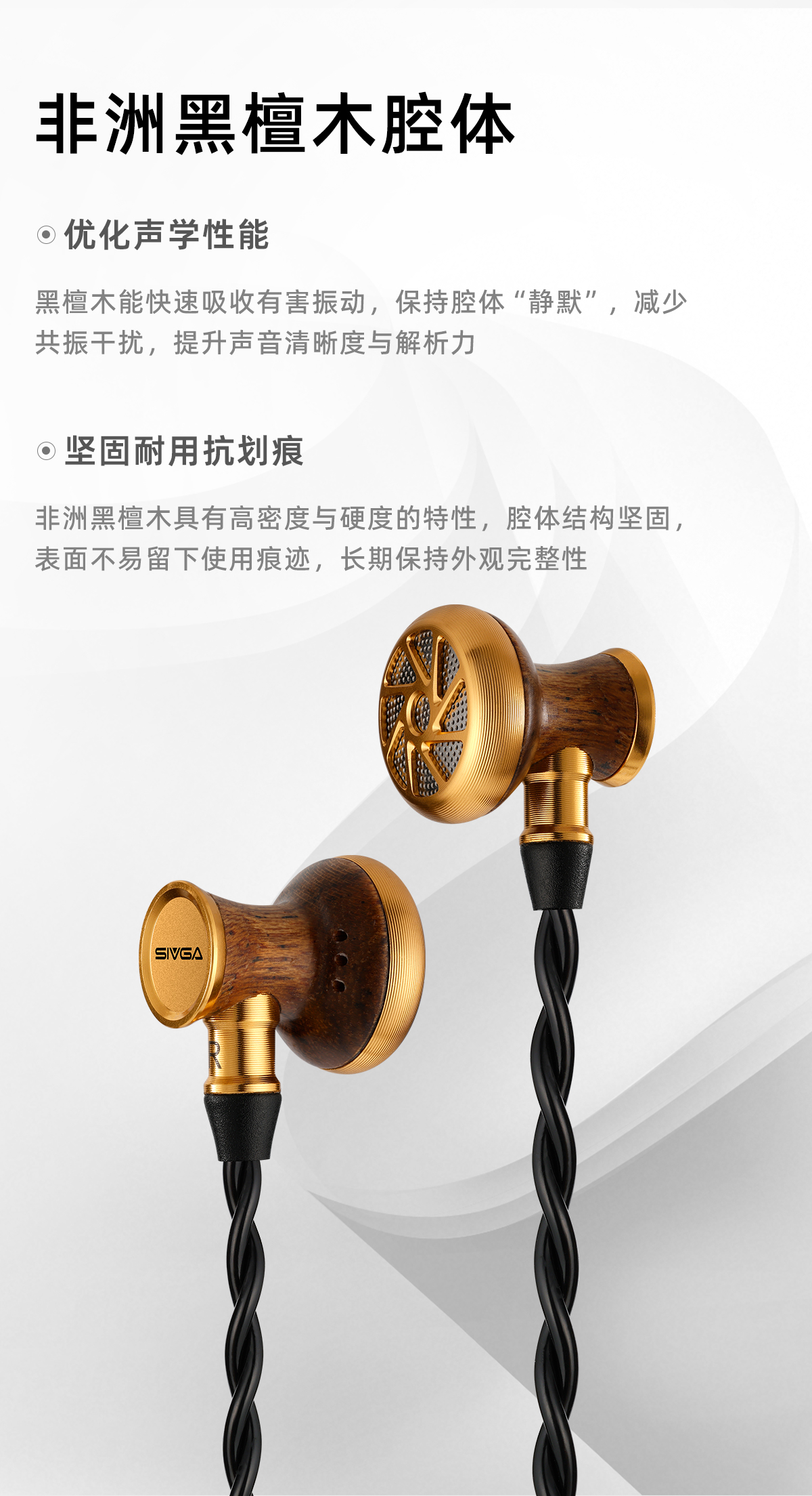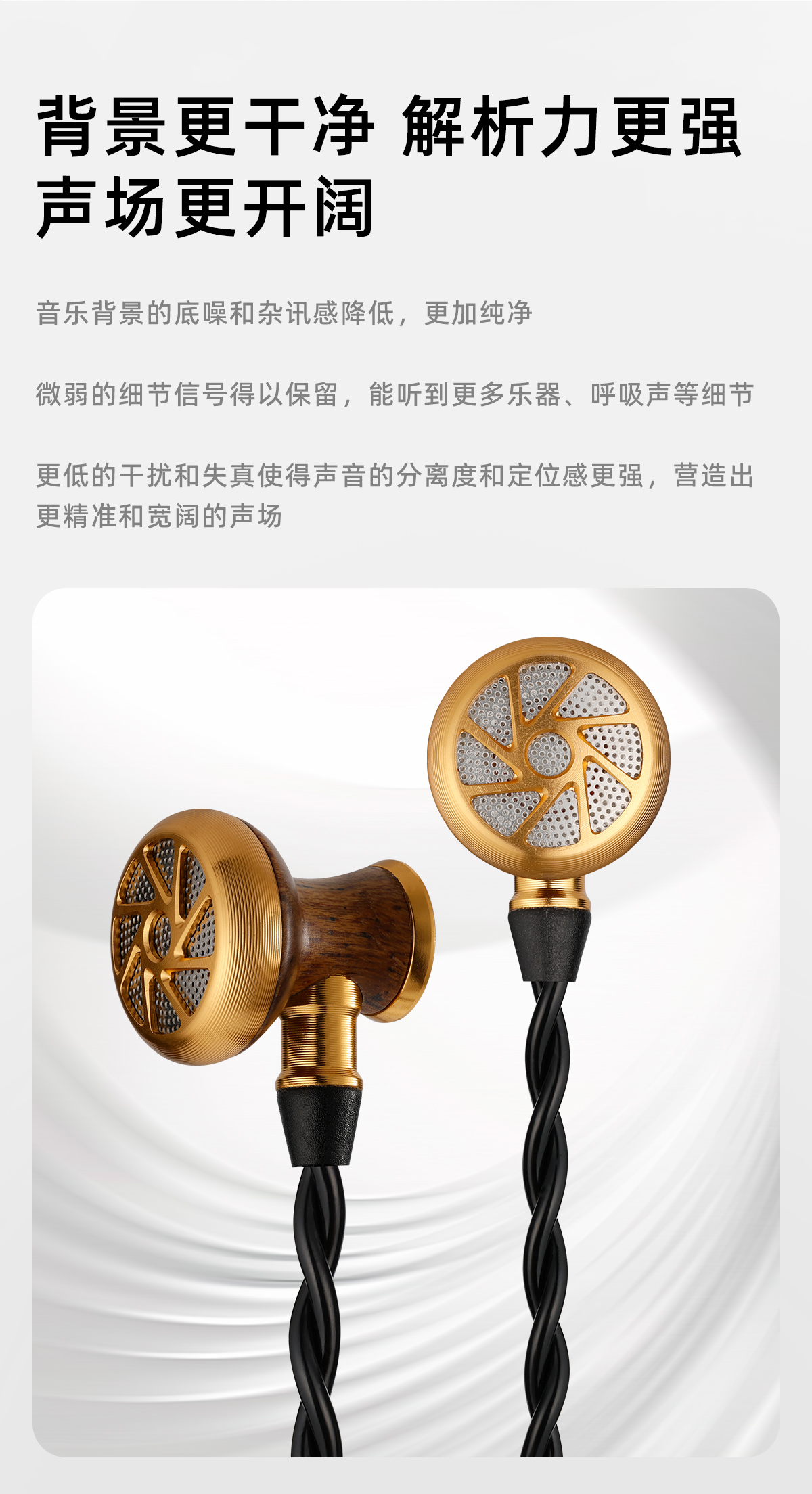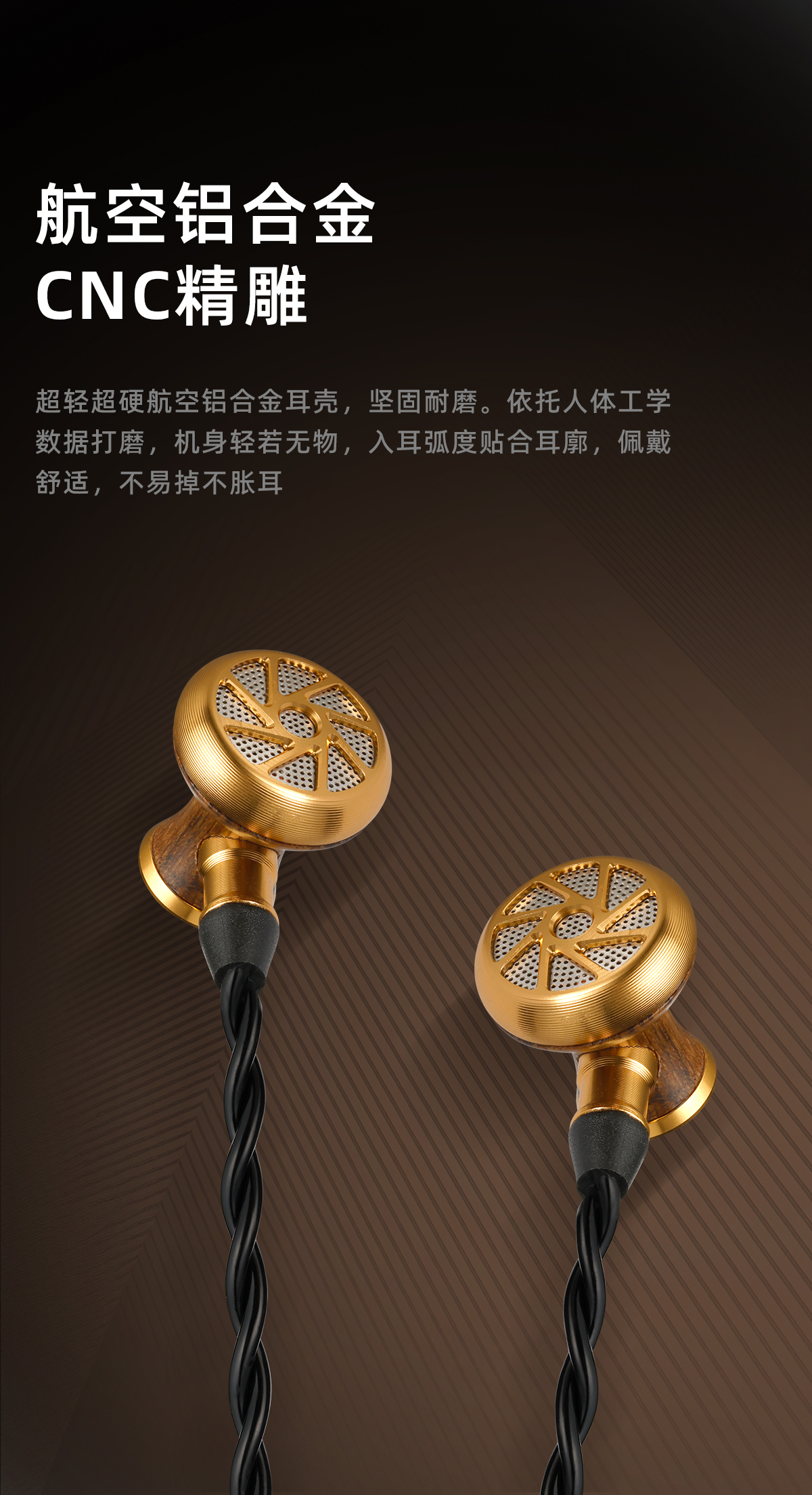 -15.4mm大尺寸平头动圈单元 -非洲黑檀木腔体 -航空铝合金CNC精雕 -3.5mm 高纯度无氧铜镀银线