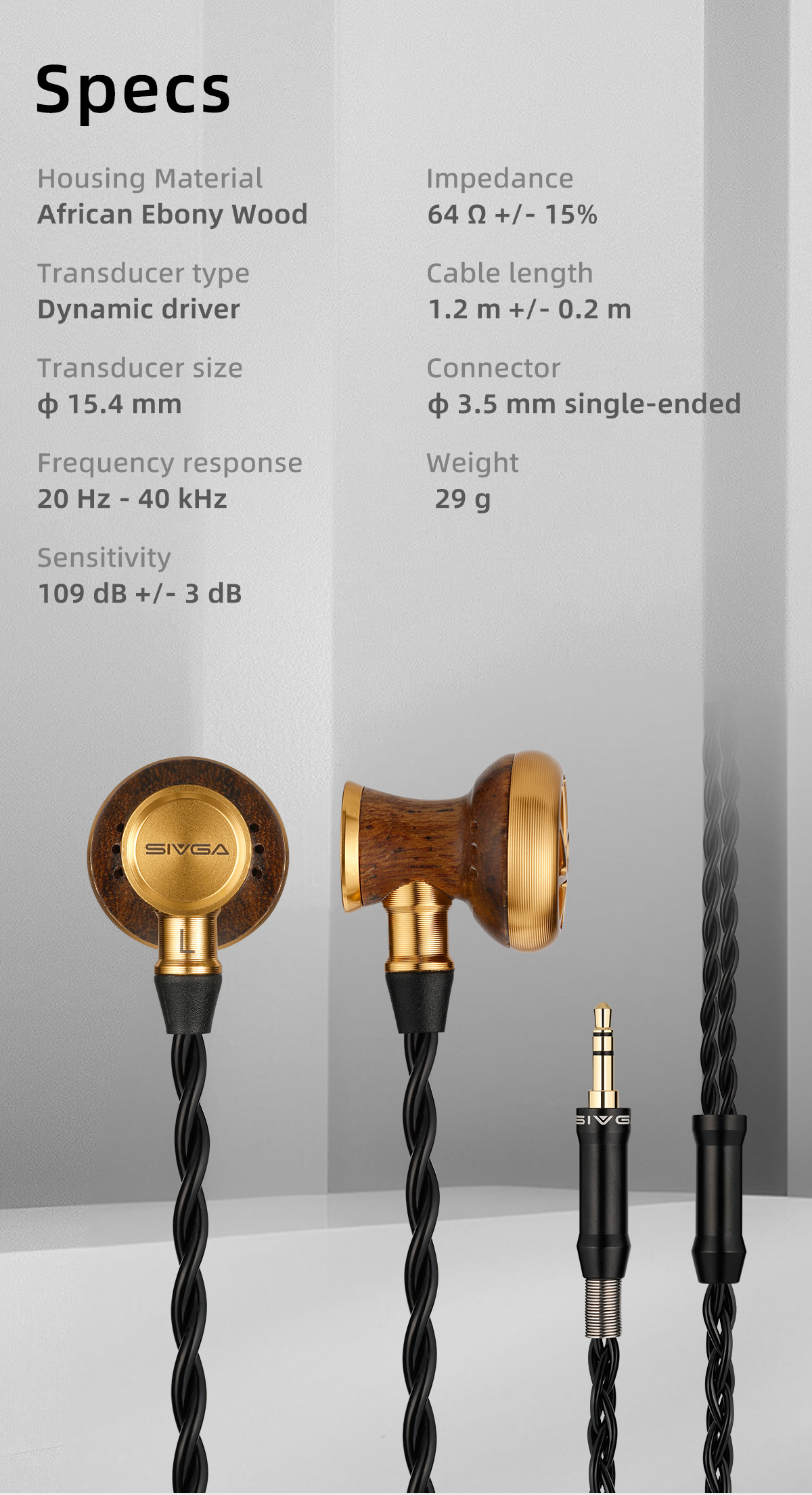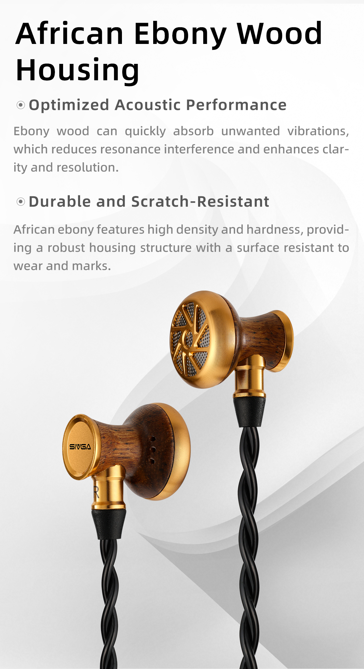 -15.4mm Large Dynamic Driver -African Ebony Wood Housing -CNC-Machined Aviation Aluminum Alloy -3.5mm SE High-Purity Silver-Plated OFC Cable