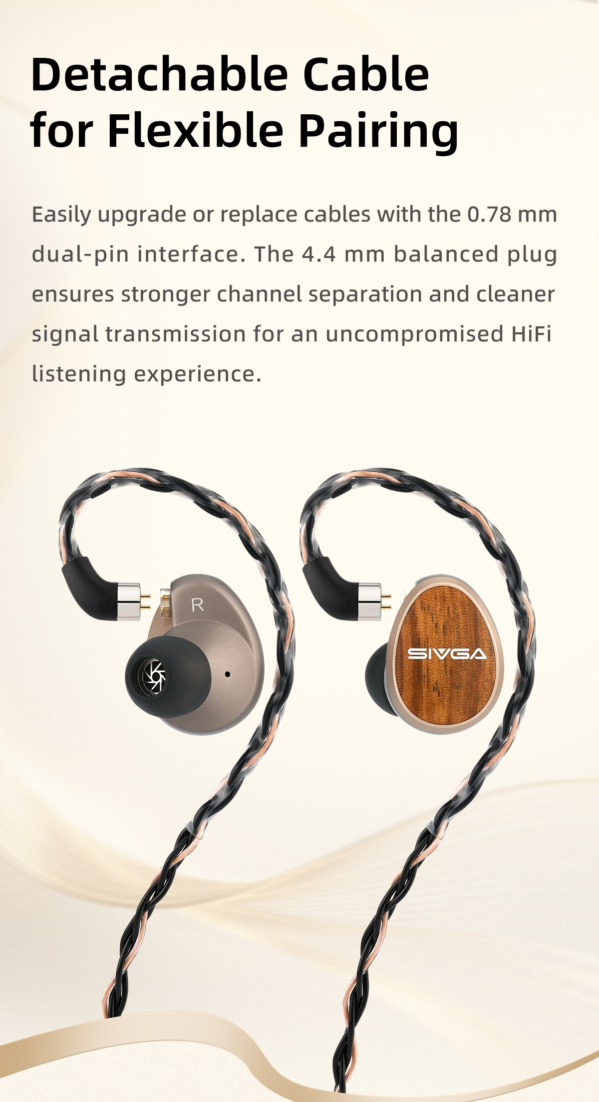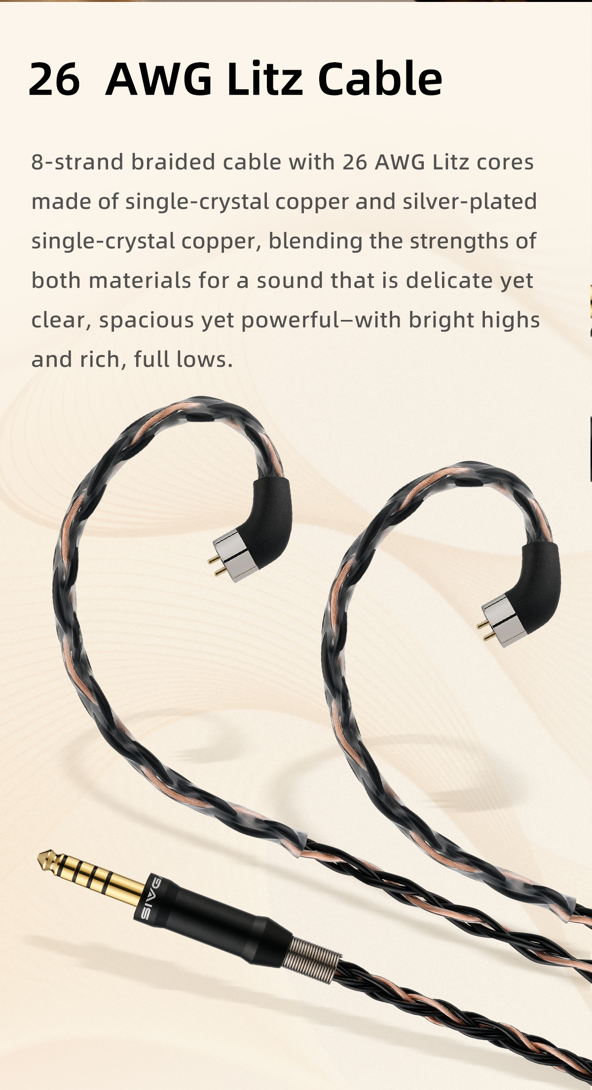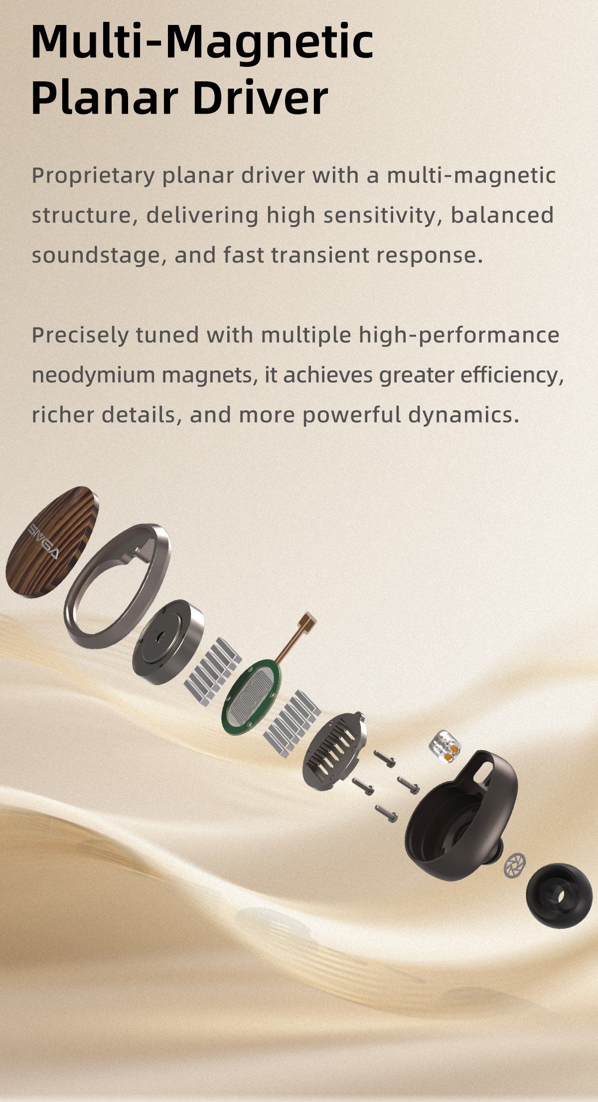 - Multi-Magnetic Planar Driver - Zebrawood Faceplate - 5-axis CNC-machined aviation aluminum-magnesium alloy housing - 26 AWG single-crystal copper and silver-plated single-crystal copper detachable Cable